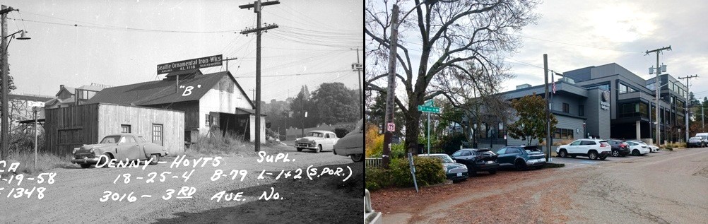 When the ship canal was completed in 1917, it created a change in the definition of the boundaries of the Fremont neighborhood. There had been a Fremont Bridge (over a small stream) before the ship canal and “Fremont” had included the area on the south side. The area as far south as Florentia Street, now on the south side of the bridge, was part of a plat called Denny & Hoyt’s which defined the original Fremont. But once the wide channel of the ship canal was created, the south side came to be defined as Queen Anne area.